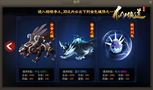 经过一番查找,小编我发现原来是1073《仙侠道》的影界极暗净土新增了3种金魂侍-穷奇之魂、雷兽之魂和球状闪电。其实各位老玩家可能已经发现了,这三种新增的魂侍跟之前的3种金魂属性相差无几,甚至触发的技能还不如3种老金魂,还让人觉得十分鸡肋。不过这都不是重点,这三种金魂另有用途。