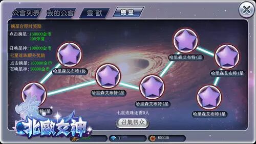 摘星是公会全体成员需共同完成的玩法之一,摘得星星将获得金币等丰厚奖励,如果与其他六名小伙伴一起凑齐了七星连珠,还可以获得额外更多奖励。每日玩家有10次轮抽牌机会,玩家每轮可抽取无数张牌,但单轮卡牌总点数超过21点,则为失败不计入累计点数中。每周系统将根据公会玩家获得累计点数排行情况发放丰厚的金币、荣誉等奖励。公会boss是专属于公会成员福利额外获得更多荣誉,周一到周五的公会boss需公会会长、成员进行激活后方可开放,周六、日的公会boss为免费开放。
